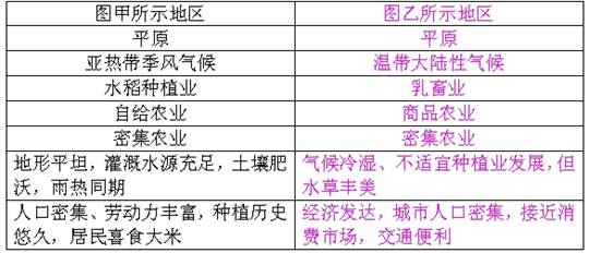 ②区域产业结构:甲区域________产业所占比重较大;乙区域________产业比重较大。