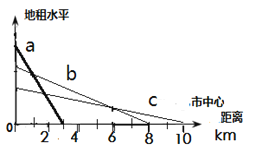 【题目】读图“某城市各类土地利用付租能力随距离递减示意图”,图中三条变化线分别代表商业、住宅、工业的付租水平情况。分析回答: