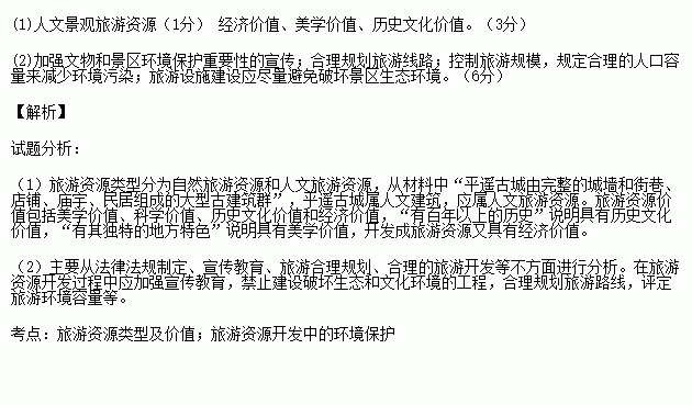 (1)¸ù¾Ý²ÄÁÏÅÐ¶ÏÆ½Ò£¹Å³ÇÊôÓÚÄÄÖÖÂÃÓÎ×ÊÔ´ÀàÐÍ£¿ÆäÂÃÓμÛÖµÓÐÄÄЩ£¿