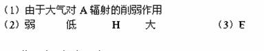(3)近几十年来,大气中二氧化碳的含量提高了,图中(B、C、D、E中)的 辐射量减少,导致全球变暖。