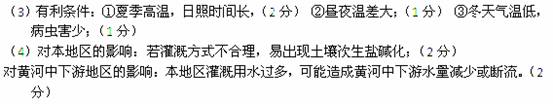 (4)如果大量利用丰富的黄河水资源在贺兰山东麓地区发展120万亩葡萄生产,应当避免可能对本地产生的不利影响是 (1分)