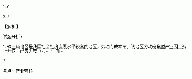 1.下列产业中,最有可能属于珠江三角洲地区衰退性产业转移的是( )