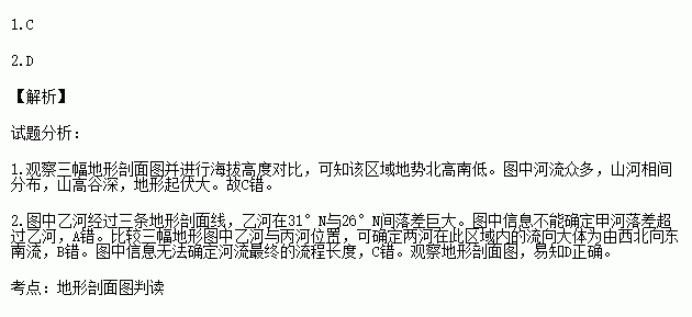 C.甲河较丙河流程长 D.甲、乙河间距26°N较28°N大
