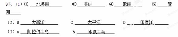⑴将图中数字所代表的大洲的名称填写在下面的空格内。