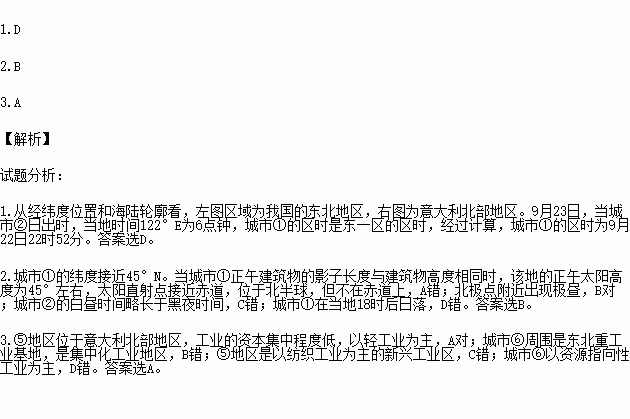 1.9月23日,当城市②日出时,城市①的区时是