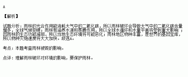 如果亚马孙雨林被毁,将可能造成的影响是( )
