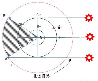 在距离地面高度等于地球半径的赤道上空,春分日的昼长为( )