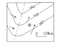 【题目】下图表示北半球中纬地区11月某日等压线分面(单位百帕)。据此完成下列要求。![]()