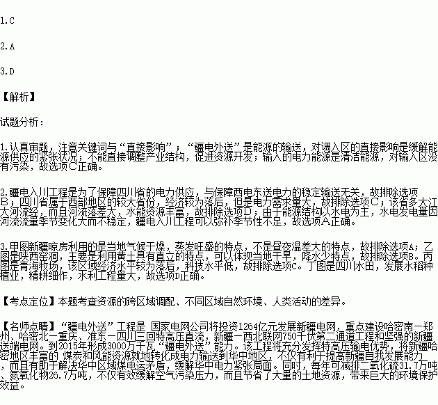 2.四川省积极推进疆电入川工程建设的主要原因是( )