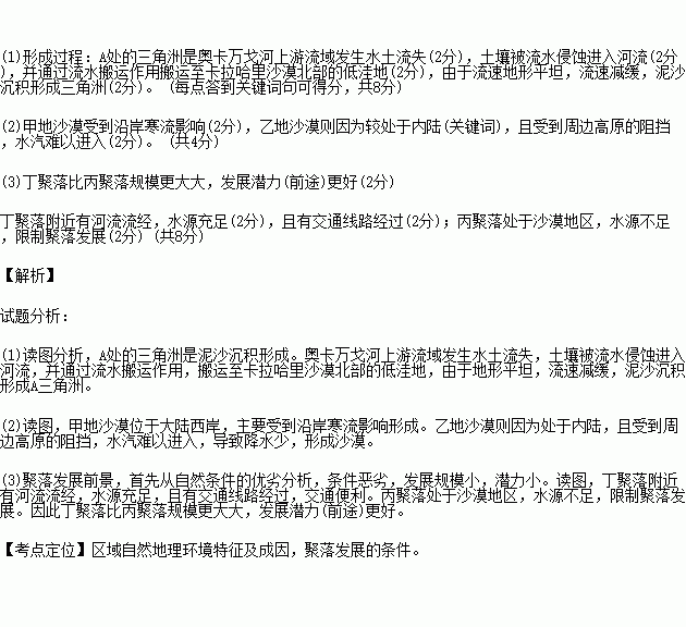 材料一 奥卡万戈三角洲(图中的A三角洲),亦称“奥卡万戈沼泽”,是世界上最大的内陆三角洲,由奥卡万戈河注入卡拉哈里沙漠而形成。