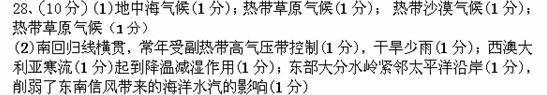 (2)试从大气环流、洋流、地形方面,简要说明澳大利亚中部地区热带沙漠气候的主要成因。