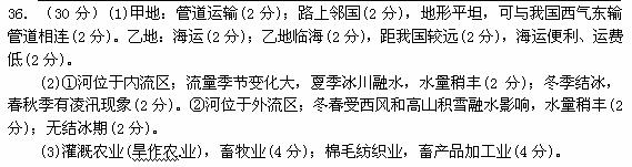 (1)分别指出中国进口甲乙两地油气资所采用的运输方式,并说明理由。(14分)