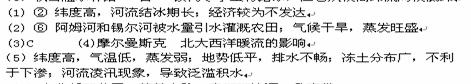 (1)图中 (填代号)为鄂毕河。该河流量丰富,但航运价值不大,原因是 。(3分)