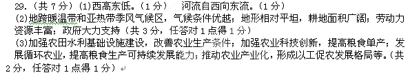 (2)试分析河南省粮食生产的有利条件。(3分)