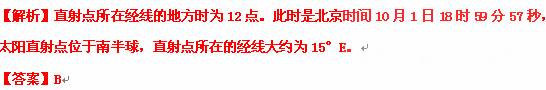 北京时间2010年10月1日18时59分57秒,“嫦娥二号”探月卫星成功发射。“嫦娥二号”发射时,图中①②③④地点最靠近太阳直射点的是( )