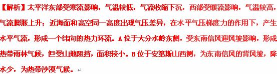 (2) 比较A、B两地地形对气候的影响。(6分)
