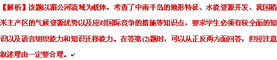 (3)分析我国稻米主产区的气候资源优势。(6分)