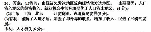 (3)四川人口大量外迁对本省产生的影响?(6分)