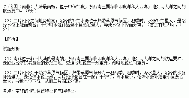 (1)根据材料一,说明南非地理位置的突出特征及重要性。(6分)