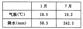 材料二 甲地1月、7月的气温和降水资料.![]()