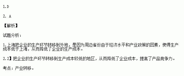 ¡°ÉϺ£ÖÆÔ족ÊÇÖйú´«Í³Æ·ÅÆ£¬µ±Ç°ÉϺ£ÕýÏò¡°Á½Í·£¨Ñз¢¡¢ÓªÏú»·½Ú£©ÔÚ»¦£¬Öм䣨Éú²ú»·½Ú£©ÔÚÍ⡱µÄ¾ÓªÄ£Ê½×ª±ä¡£ÏÂͼʾÒâÉϺ£Êв¿·ÖÆóÒµ×ªÒÆ£¬¶ÁͼÍê³ÉÏÂÁи÷Ìâ¡£
