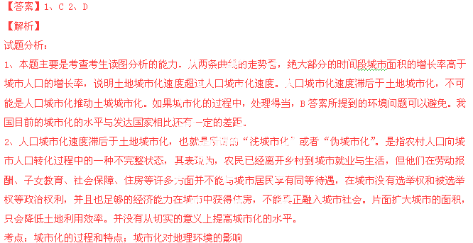 A.人口城市化推动了土地城市化的发展 B.必定会出现一系列的环境问题