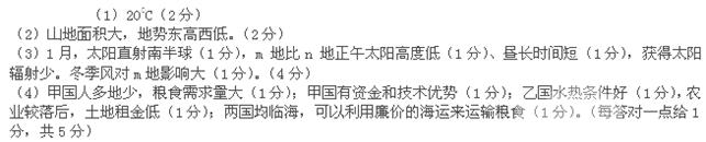 £¨1£©¾Ýͼ·ÖÎö£¬Ò»Ô¼׹úËùÔڰ뵺±±²¿mɽµØºÍÄϲ¿nµØµÄβîΪ¶àÉÙ¶È¡££¨2·Ö£©