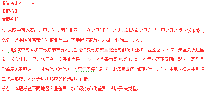D.甲地以乳畜业为主,乙地以游牧业为主