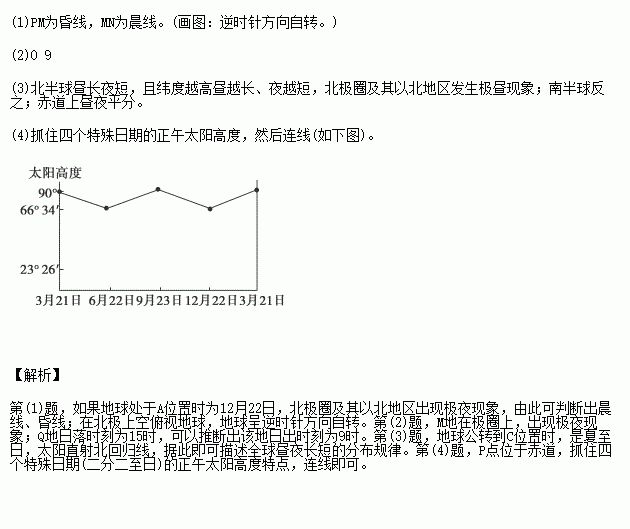 (2)该日,M地的昼长为________小时,Q地日出地方时为________时。