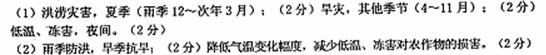 (1)指出威胁B地区发展种植业的主要气象灾害及发生时间。(6分)
