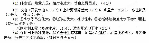 (2)流经6个国家故被称为“东方多瑙河”的澜沧江干流,目前已成为中国与东盟贸易的重要国际通道。P地上游河段主要开发的是 资源,原因是 、 等,开发同时易出现