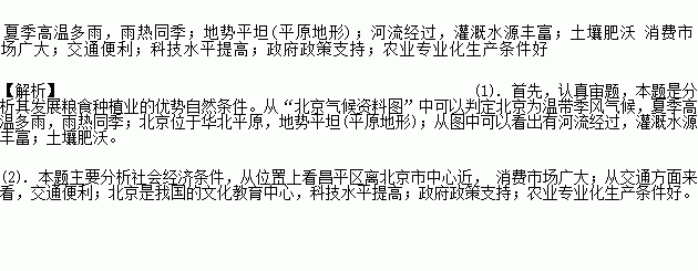 材料二:顺义位于北京市东北郊,素有“京郊粮仓”的美誉。全区粮食生产已基本实现了农田喷灌化、作业机械化、种植良种化、农业现代化,综合水平居全国领先地位。