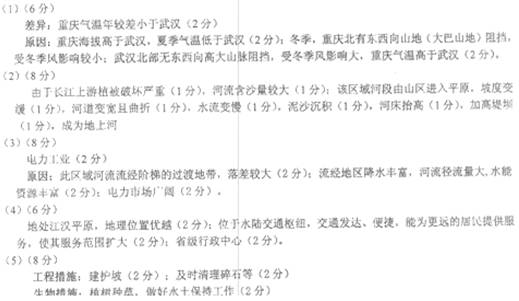 (1)比较重庆与武汉气温年较差的差异,并说明主要原因。(4分)