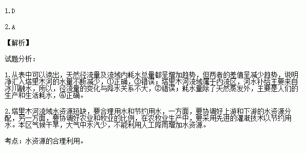 ¢Û¾»»ãÈëËþÀïľºÓµÄË®Á¿²»¶ÏÔö¼Ó ¢ÜÁ÷ÓòÄÚºÄË®×ÜÁ¿µÄ±ä»¯ÓëÈËÀà»î¶¯ÓйØ