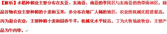 C. 丙地:混合农业——地形 D. 丁地:乳畜业——气候