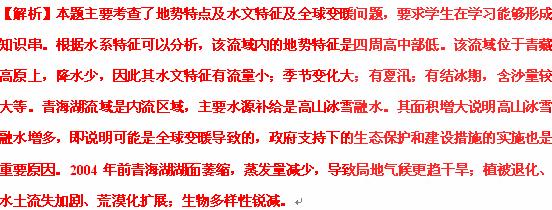 (3)½áºÏËùѧµØÀí֪ʶ£¬ÍƶÏ2005ÄêÒÔÀ´ÇຣºþÃæ»ý²»¶ÏÔö´óµÄÔÒò¡£(3·Ö)