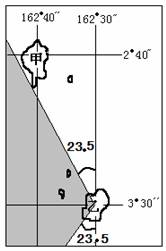 (1)春分日乙岛日出时,国际标准时间为 。(2分)