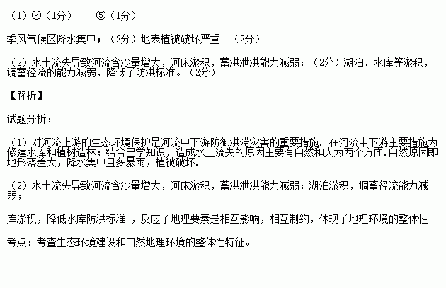 (2)简析水土流失会加剧洪涝灾害的原因。(4分)