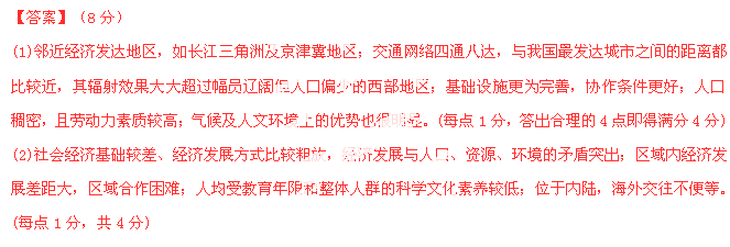 (1)与我国西部地区相比,中原经济区承接国内产业转移有什么优势?(4分)