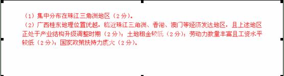(2)说明桂东承接产业转移的区位优势条件。(8分)