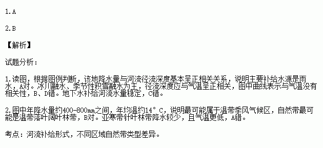 1.该流域河水最主要的补给水源是
