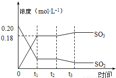 已知2SO2 (g)+O2(g) 2SO3(g)△H=-196kJ?mol-1,500C时将2mol SO2和1molO2装入一体积恒定的10L密闭容器中,2分钟(t1)时达到平衡.如下图所示: