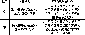 基于乙同学的猜想,请设计实验方案,验证乙同学的猜想是否正确.写出有关的实验操作、预期现象和结论.(不一定填满,也可以补充)