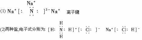 (2)Na3N与盐酸反应生成_______________种盐,其电子式分别是_______________。