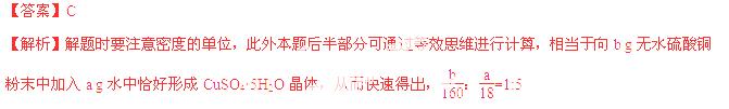 25 ℃时,某硫酸铜溶液的质量分数为w,物质的量浓度为c mol/L,密度为ρ g/mL,将此溶液蒸去a g水或再向原溶液中加入b g无水硫酸铜粉末,充分静置并恢复至25 ℃时,均恰好全部转化为CuSO4·5H2O晶体。则下列关系式正确的是
