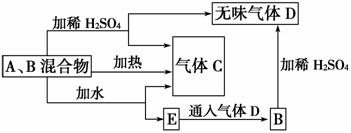 有A、B两种常见化合物组成的混合物,其焰色反应均为黄色,其相互转化关系如图(其他物质均略去)。