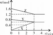 (7分)某温度时,在2L密闭容器中,X、Y、Z三种物质的物质的量随时间变化的曲线如图所示。由图中数据分析:![]()