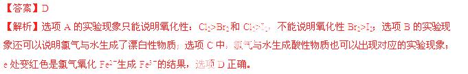 | D | e处变红色 | 还原性:Fe2+>Cl- |