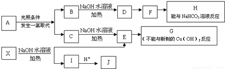 (16分)某芳香烃A,分子式为C8H10;某烃类衍生物X,分子式为C15H14O3,能使FeCl3溶液显紫色:J分子内有两个互为对位的取代基。在一定条件下有如下的转化关系:![]()