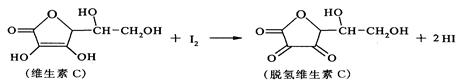 | A、上述反应为氧化还原反应 | B、滴定时可用淀粉溶液作指示剂 | C、滴定时应剧烈振荡锥形瓶使反应充分 | D、脱氢维生素C的分子式为C6H6O6 |